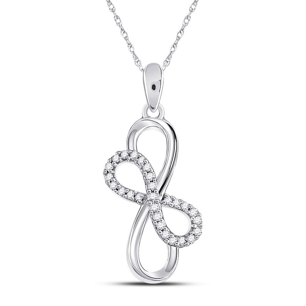 10kt White Gold Womens Round Diamond Linked Double Infinity Pendant 1/6 Cttw