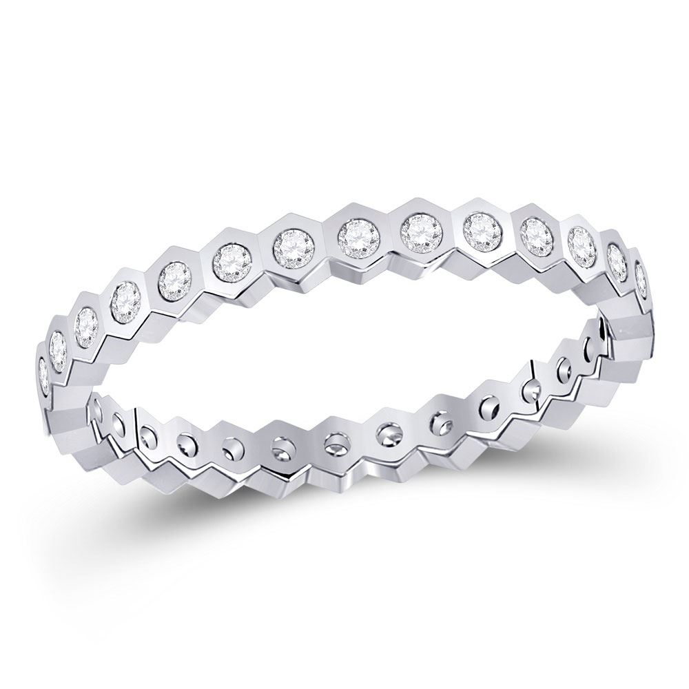 14kt White Gold Womens Round Diamond Machine-Set Band Ring 1/4 Cttw