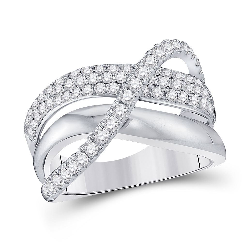 REF-87H5R ---- Womens Round Diamond Modern Crossover Band Ring 1 Cttw 14kt White Gold
