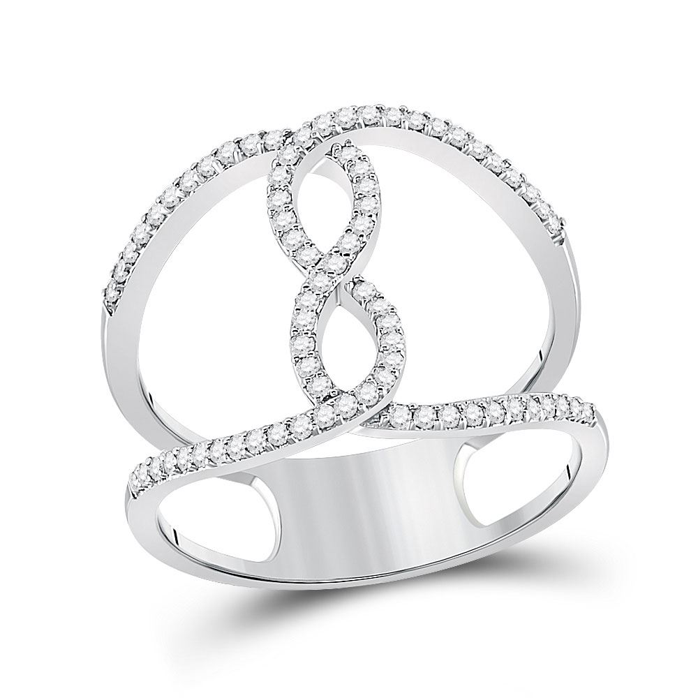 REF-21K5Y ---- Womens Round Diamond Negative Space Infinity Ring 1/4 Cttw 10kt White Gold