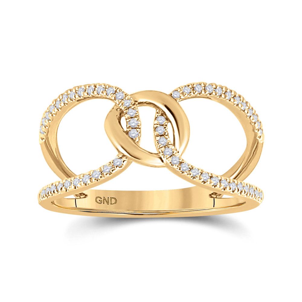 REF-25X9A ---- Womens Round Diamond Negative Space Link Fashion Ring 1/6 Cttw 14kt Yellow Gold