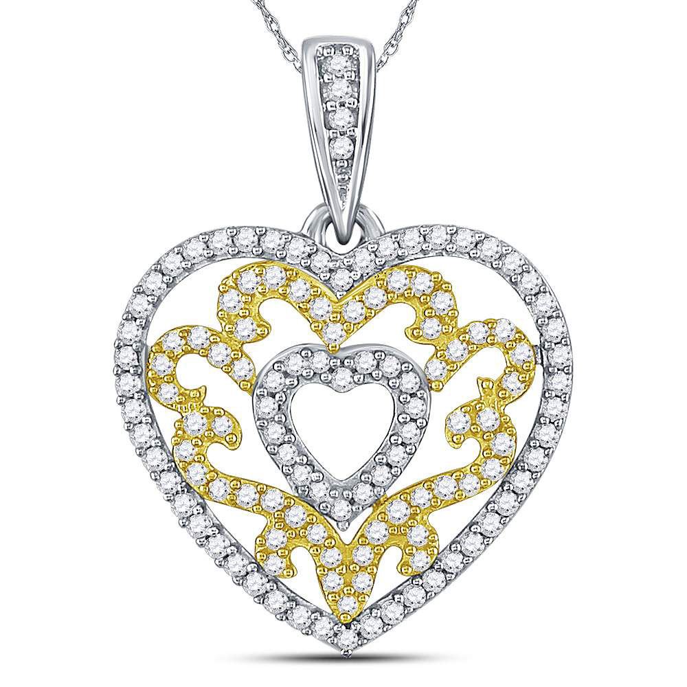10kt Yellow Gold Womens Round Diamond Nested Curl Heart Pendant 1/2 Cttw