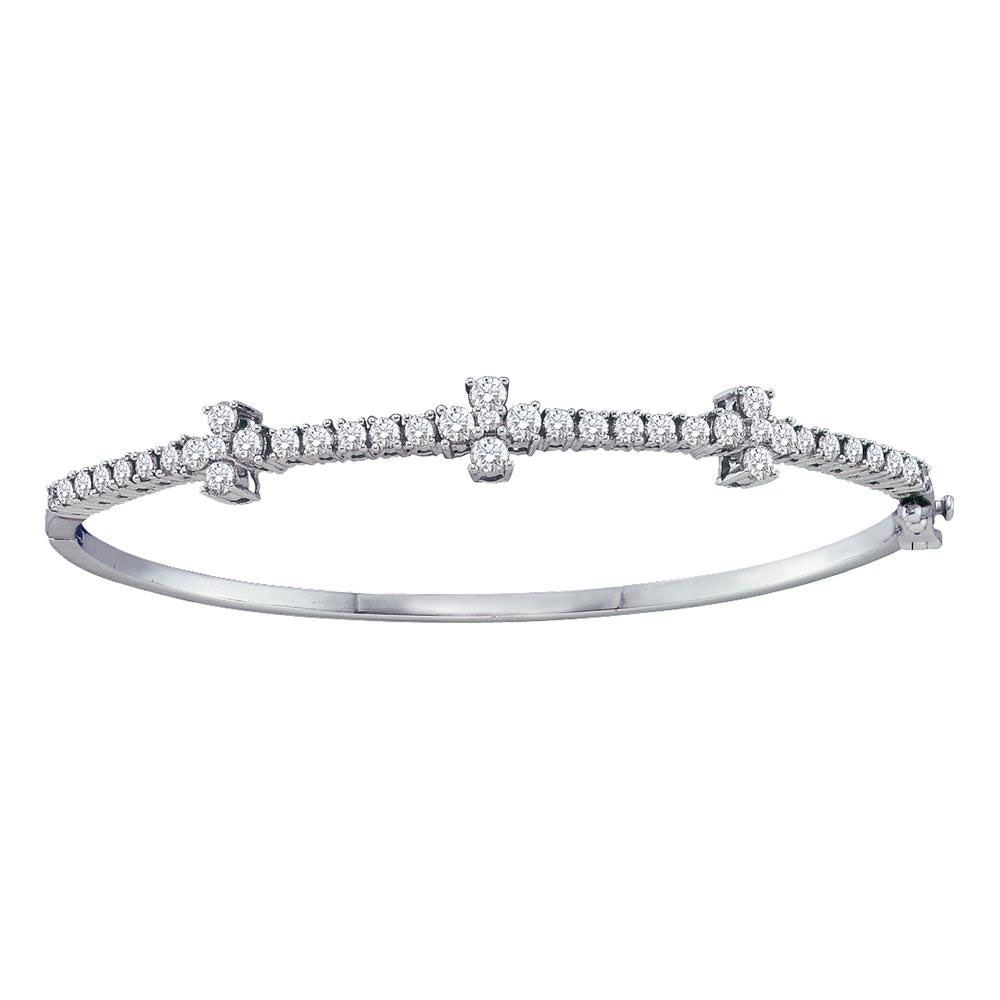 REF-131H5R ---- Womens Round Diamond Pave-set Bangle Bracelet 1-1/2 Cttw 14kt White Gold