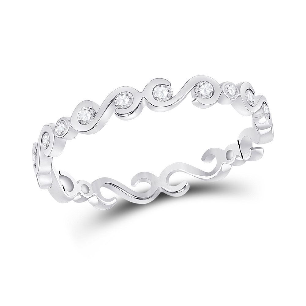 REF-12K9Y ---- Womens Round Diamond S-Shape Stackable Band Ring 1/8 Cttw 10kt White Gold