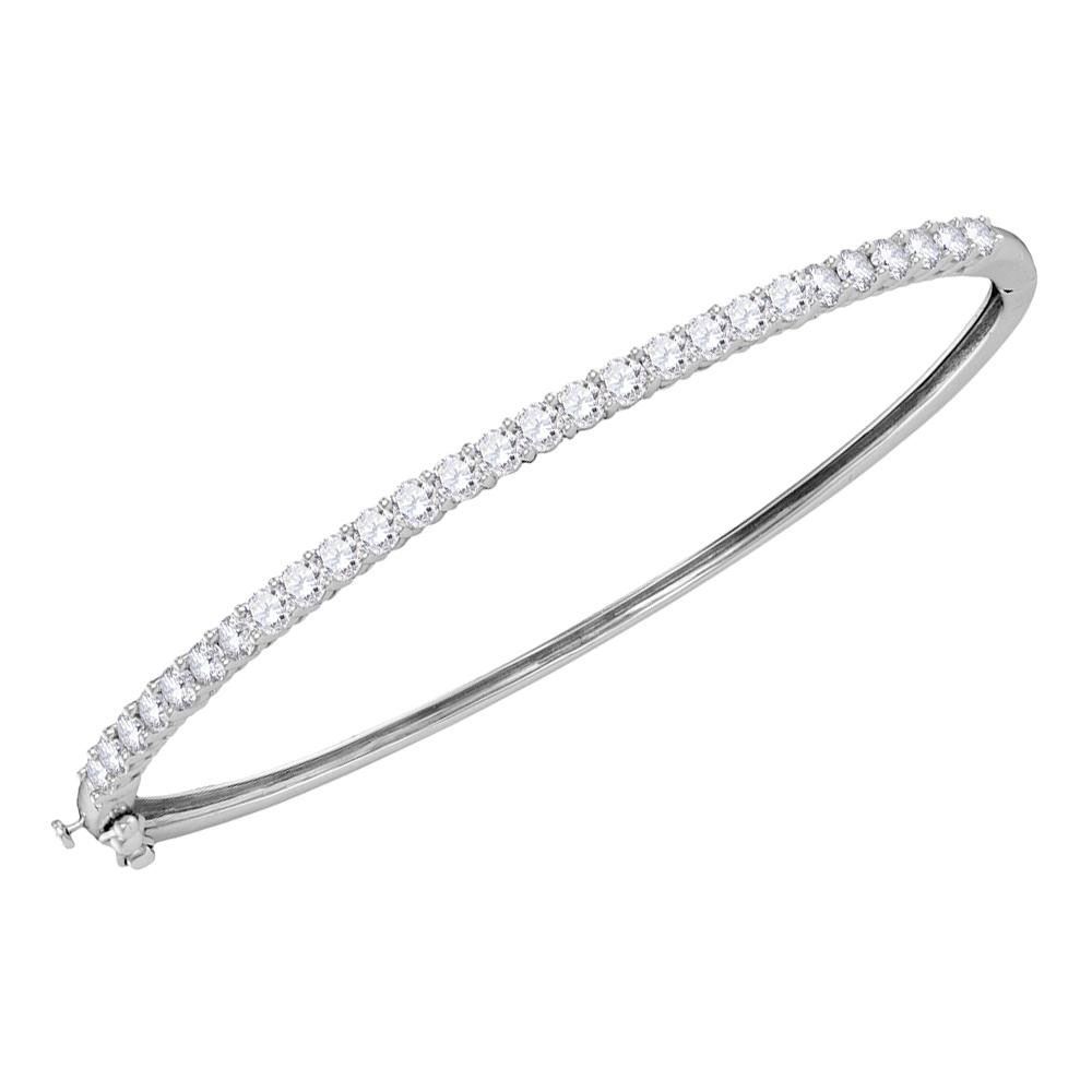 14kt White Gold Womens Round Diamond Single Row Bangle Bracelet 2 Cttw