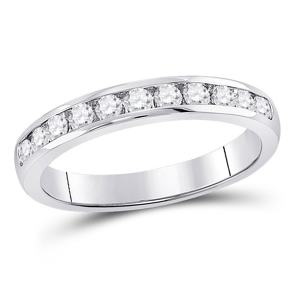 REF-46M9H ---- Womens Round Diamond Single Row Channel-set Wedding Band 1/2 Cttw 14kt White Gold
