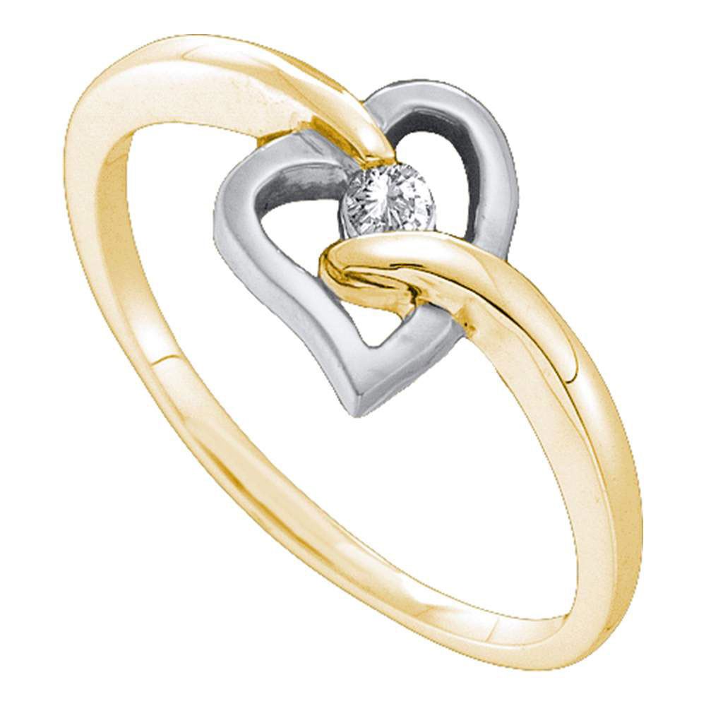 REF-8M5H ---- Womens Round Diamond Solitaire Two-tone Heart Ring 1/20 Cttw 10kt Yellow Gold