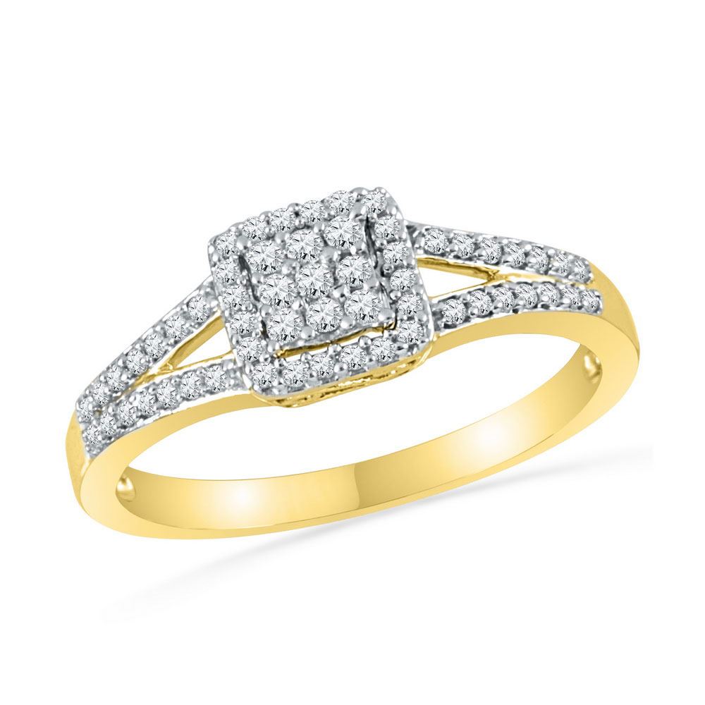 REF-16F9W ---- Womens Round Diamond Square Cluster Split-shank Ring 1/4 Cttw 10kt Yellow Gold