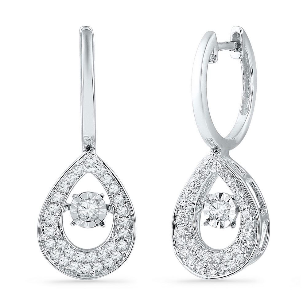 REF-43W5K ---- Womens Round Diamond Teardrop Moving Twinkle Dangle Earrings 1/2 Cttw 10kt White Gold