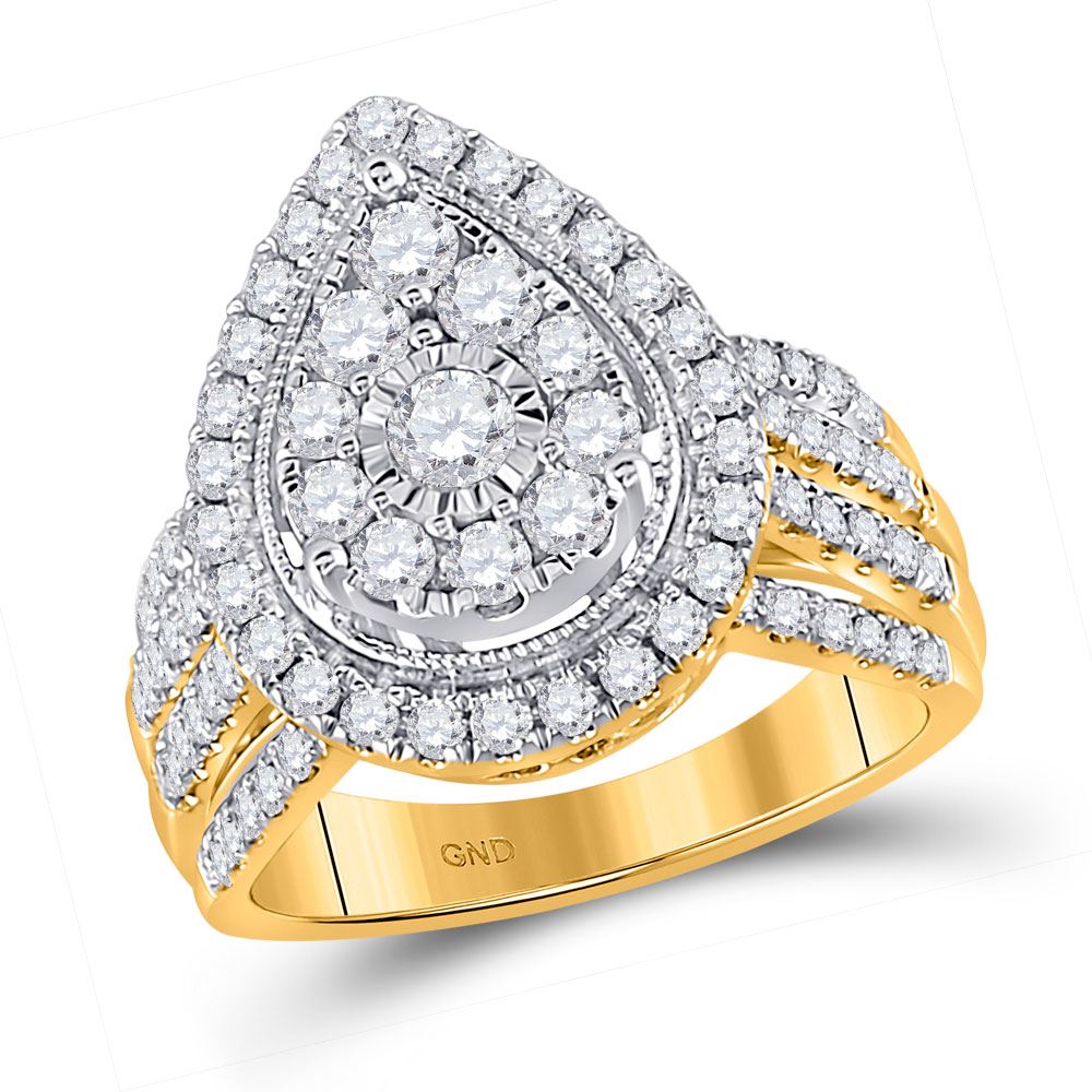 REF-129N5F ---- Womens Round Diamond Teardrop Pear Cluster Ring 1-1/2 Cttw 14kt Yellow Gold