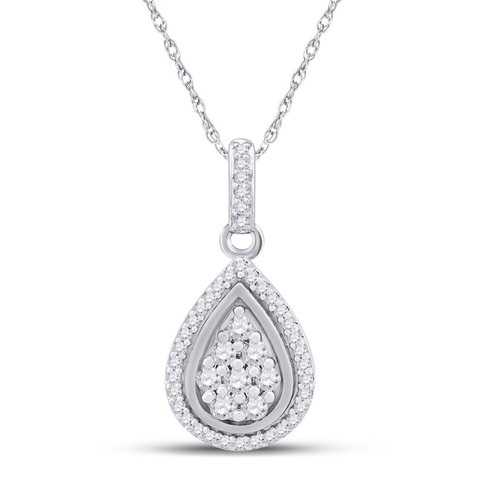 REF-16R9X ---- Womens Round Diamond Teardrop Pendant 1/4 Cttw 10kt White Gold