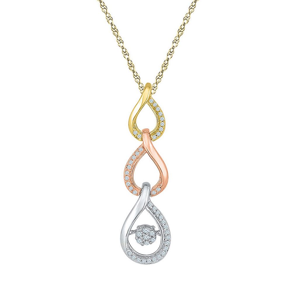 10kt Tri-Tone Gold Womens Round Diamond Triple Teardrop Moving Twinkle Pendant 1/6 Cttw