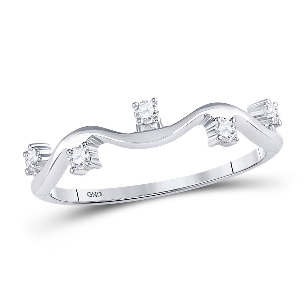 REF-15H9R ---- Womens Round Diamond Wave Stackable Band Ring 1/8 Cttw 10kt White Gold