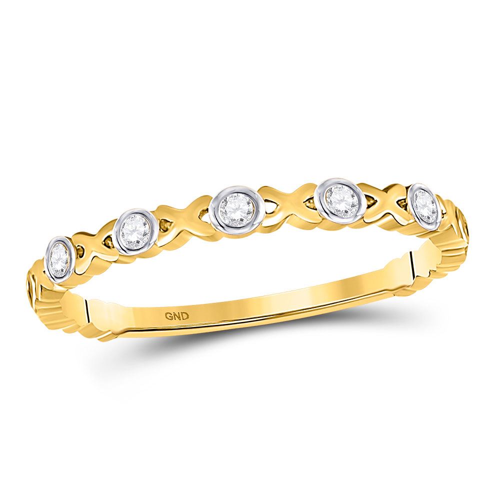 REF-10M5H ---- Womens Round Diamond XOXO Love Stackable Band Ring 1/12 Cttw 10kt Yellow Gold