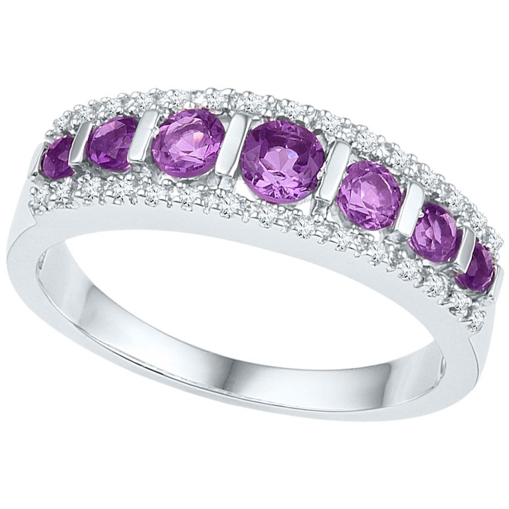 REF-18W9K ---- Womens Round Lab-Created Amethyst Band Ring 3/4 Cttw 10kt White Gold