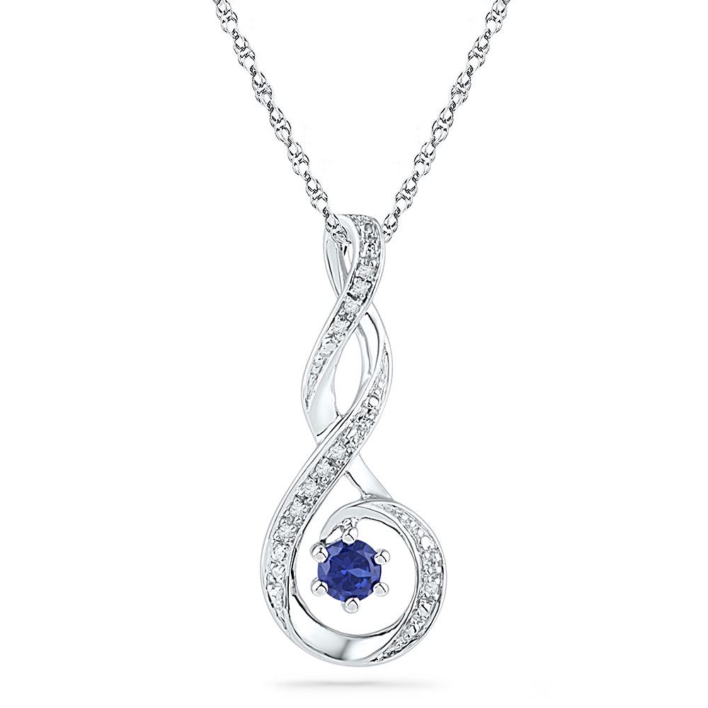 10kt White Gold Womens Round Lab-Created Blue Sapphire Diamond Teardrop Pendant .03 Cttw