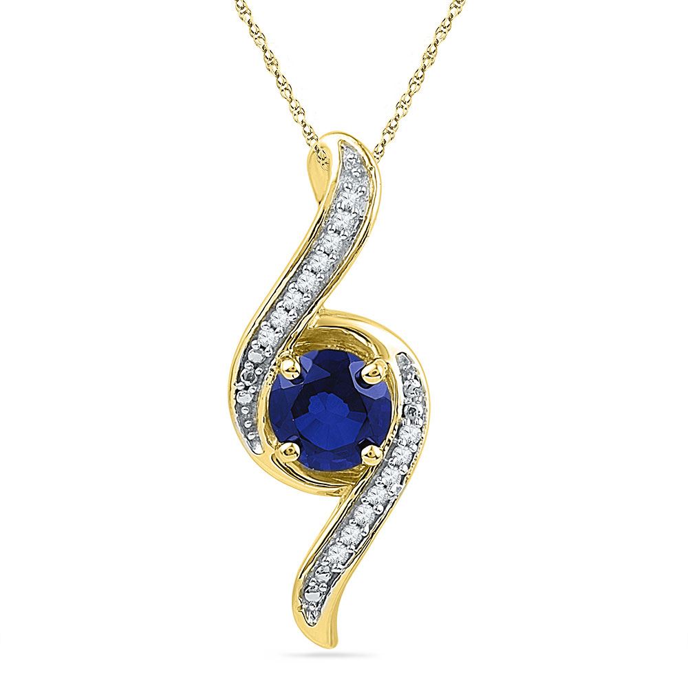 10kt Yellow Gold Womens Round Lab-Created Blue Sapphire Solitaire Diamond Pendant 1 Cttw