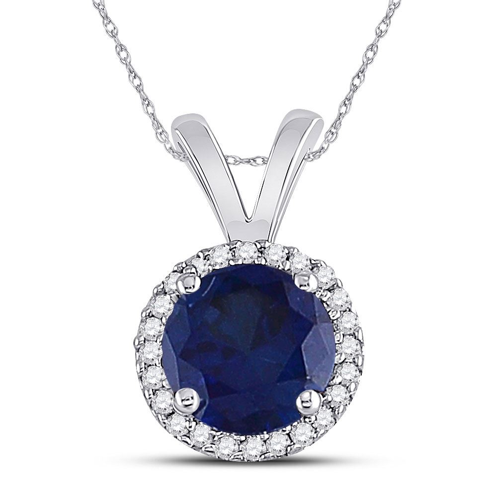 10kt White Gold Womens Round Lab-Created Blue Sapphire Solitaire Pendant 1 CttwItem Number: GND-106779Gemstone Details<span