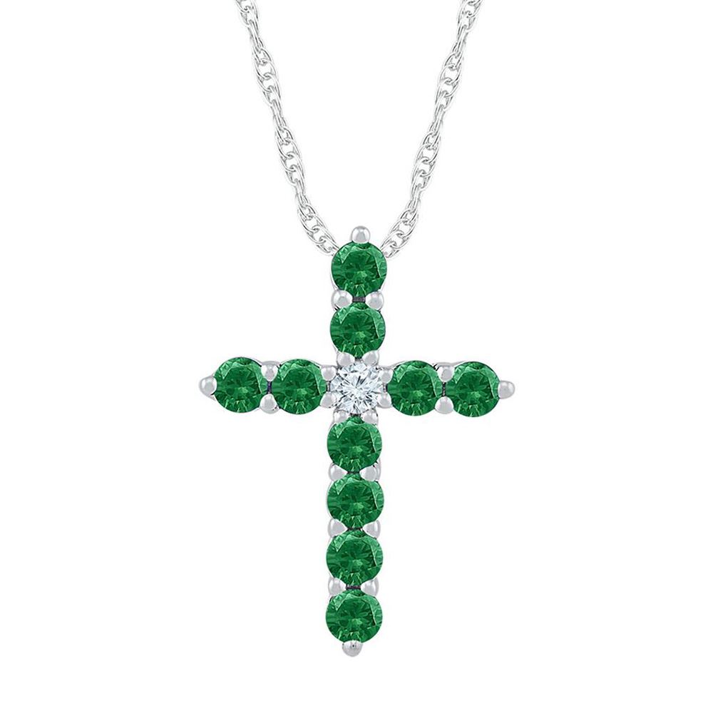 10kt White Gold Womens Round Lab-Created Emerald Cross Pendant 5/8 CttwItem Number: GND1116716Gemstone Details5/8 Carats total weight