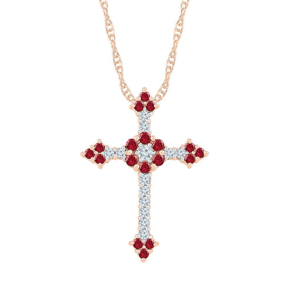 10kt Rose Gold Womens Round Lab-Created Ruby Faith Cross Pendant 1 CttwItem Number: GND-150233Gemstone Details<span