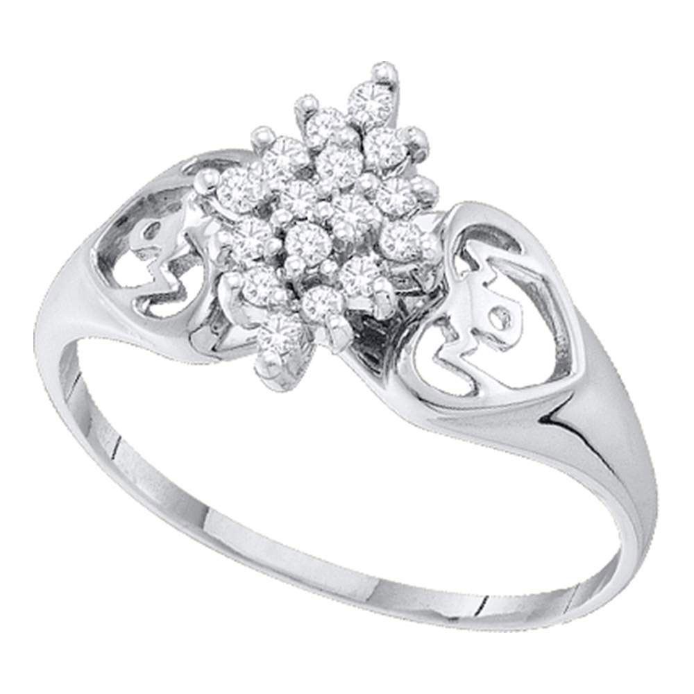REF-12H5R ---- Womens Round Prong-set Diamond Cluster Heart Mom Ring 1/6 Cttw 14kt White Gold