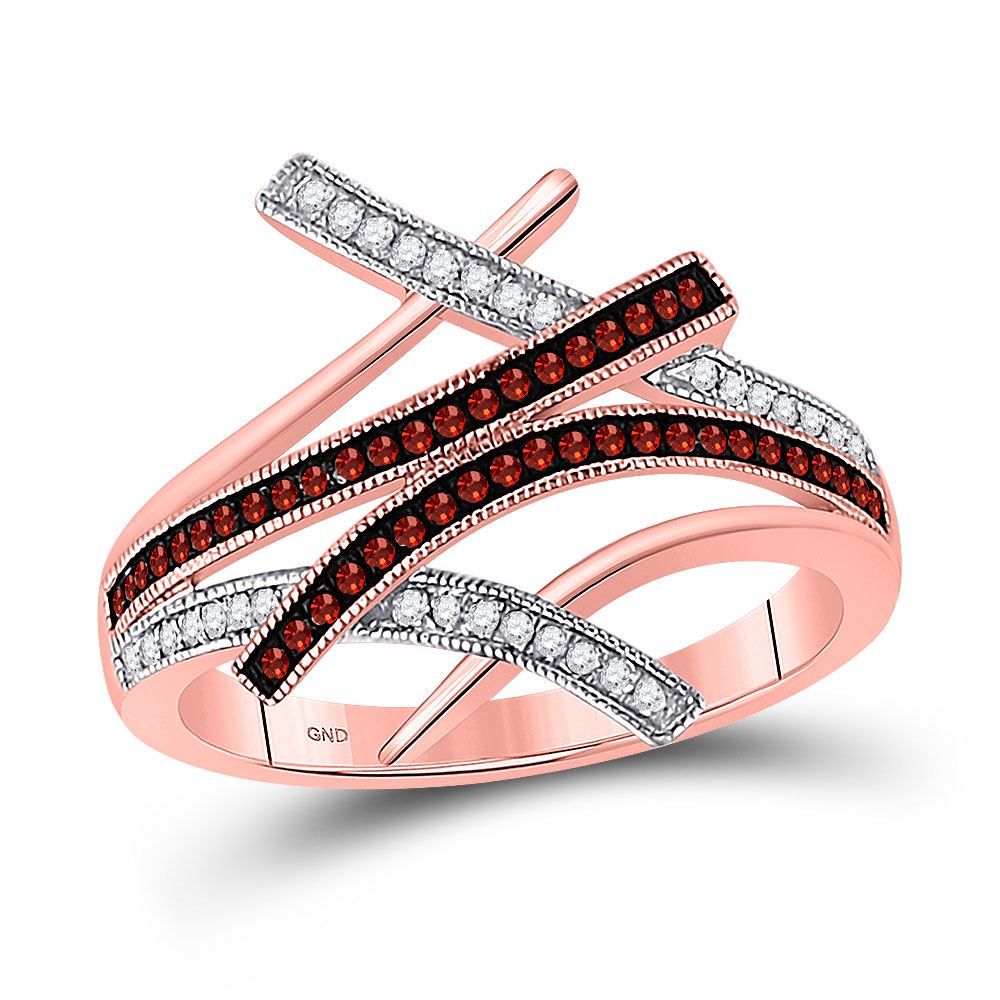 REF-21X5A ---- Womens Round Red Color Enhanced Diamond Bypass Fashion Ring 1/4 Cttw 10kt Rose Gold