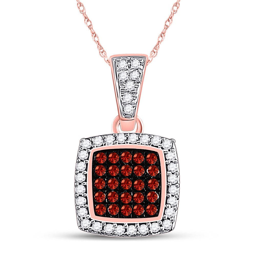 10kt Rose Gold Womens Round Red Color Enhanced Diamond Square Cluster Pendant 1/6 CttwItem Number: GND154522Gemstone Details1/6 Carats total weight