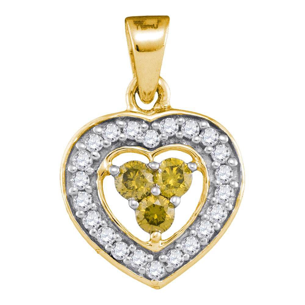 10kt Yellow Gold Womens Round Yellow Color Enhanced Diamond Heart Frame Pendant 1/3 Cttw