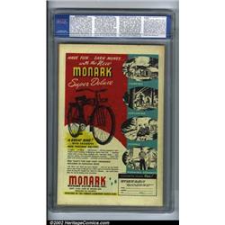 Wonder Comics #13 (Better Publications, 1947). A superb example of Alex Schomburg's later airbrush style, we see our beautiful heroine tied to the proverbial stake, as Wonderman leaps to the rescue. The blue color scheme makes for an eye-catching cover. A pretty copy with no visible signs of wear, this book would turn the head of any fan. CGC NM- 9.2 Cream to off-white pages. Overstreet 2001 NM 9.4 value = $540.  Important notice: We expect to be auctioning lots at the rate of 200-250 per hour. Sometimes eBay Premier live bid software cannot keep up with that pace, so we strongly recommend that you place a realistic proxy bid now as insurance to avoid disappointment. Also please note that all Heritage/CAA lots purchased through eBay Premier carry a 20% Buyer's Premium.