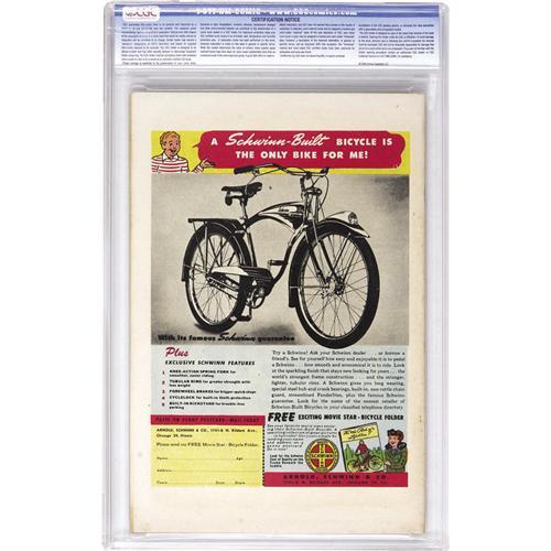 48C. COMICS – Comic books sold referencing a third-party grading service are sold "as is" without any express or implied warranty. Certain warranties may be available from the grading services and the Bidder is referred to them for further details: Comics Guaranty Corporation (CGC), P.O. Box 4738, Sarasota, FL 34230. Subject to sections 57 and 58, bidders who intend to challenge authenticity or provenance of a lot must notify Auctioneer in writing within thirty (30) days of the Auction's conclusion. Auctioneer's maximum liability shall not exceed the high bid on that lot, which bid shall be deemed for all purposes the value of the lot. In the event Auctioneer cannot deliver the lot or subsequently it is established that the lot lacks title, provenance, authenticity, or other transfer or condition issue is claimed, Auctioneer's liability shall be limited to recission of sale and refund of purchase price. After one year has elapsed, Auctioneer's maximum liability shall be limited to any commissions and fees Auctioneer earned on that lot.