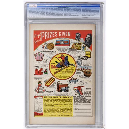 <B>Wonder Comics #16 (Better Publications, 1948) CGC VF/NM 9.0 Off-white pages.</B></I> Spectro makes an appearance while the Grim Reaper wraps up his run in this issue. Art by Al Camy, Bob Oksner, and Gene Fawcette is highlighted by an Alex Schomburg (as Xela) airbrushed cover. Overstreet 2006 VF/NM 9.0 value = $593; NM- 9.2 value = $810. CGC census 3/07: 3 in 9.0, 4 higher. <I> From the Cary and Cheryl Porter Collection.</B></I><BR><BR><b>Shipping:</b> Comics - Slabbed (certified) (<a target="_blank" href="http://www.heritageauctions.com/common/shipping.php">view shipping information</a>)