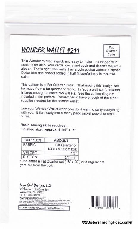 Pattern is for a wonder wallet #211 Joan Hawley 1998 for Lazy Girl Designs, LLC. SRP $9.95