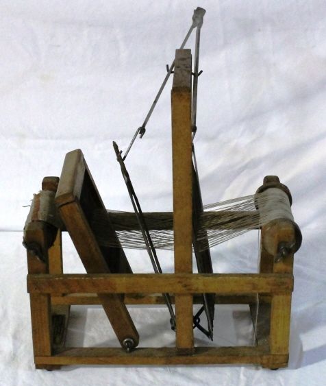 From the School Loom & Novelty Co. #52.2. Has a partially made rug on loom.