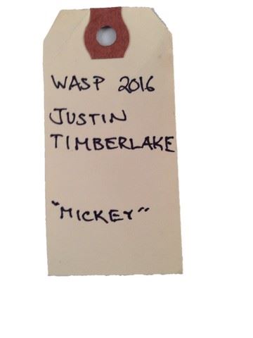 Mickey (Justin Timberlake) screen worn, hero, vintage, striped cream and blue short sleeve polo shirt, khaki 50's style pants with wide leg custom made for the film by "Bill Hargate Costumes". Inside Bill Hargate tag reads "Justin Timberlake" written in pen. Also includes white, production soiled, "Converse" tennis shoes (10). Worn in the scene on the pier with Ginny (Kate Winslet). Wardrobe tag included. A portion of the proceeds will be split equally from this sale to benefit The Entertainment Industry Foundation &