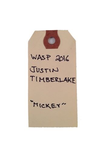 Mickey (Justin Timberlake) screen worn, hero, cream colored long sleeve dress shirt with double breast pockets and 50's style, sage green dress slacks.Wardrobe tag included.
