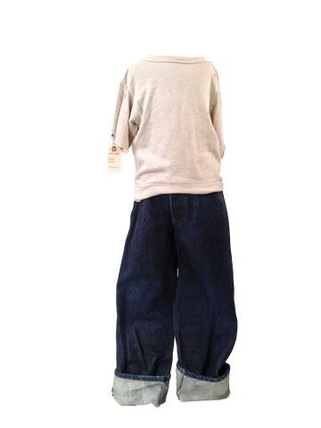 Wonder Wheel (2017) - Written and directed by Woody Allen. A new film centered on Coney Island in the 1950s where a lifeguard tells the story of a middle-aged carousel operator and his beleaguered wife. This is Richie's (Jack Gore) screen worn, beige sweatshirt (torn in different places), wide leg 50's "Barak" jeans, and brown leather "Davy Crockett" belt. Wardrobe tag included.