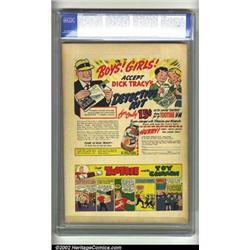 Wonder Woman #11 (DC, 1944) CGC VF+ 8.5 Cream to off-white pages. It would be interesting to see all Golden Age books that feature a superhero bending a gun turret sitting side-by-side. H.G. Peter never failed to entertain his readers with his inimitable whimsical style. This is a solid high-grade copy that just falls short of the NM range due to a few minor nicks around the cover edges. Overstreet 2004 VF value = $625. Important notice: We expect to be auctioning lots at the rate of 200-250 per hour. Sometimes eBay Premier live bid software cannot keep up with that pace, so we strongly recommend that you place a realistic proxy bid now as insurance to avoid disappointment. Also please note that all Heritage/CAA lots purchased through eBay Premier carry a 20% Buyer's Premium.