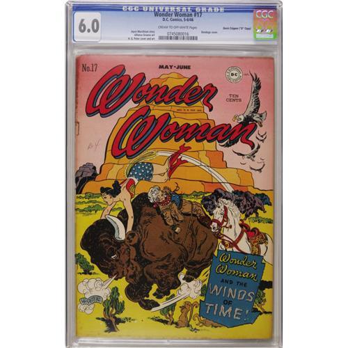 <B>Wonder Woman #17 Davis Crippen ("D" Copy) pedigree (DC, 1946) CGC FN 6.0 Cream to off-white pages.</B></I> H. G. Peter's style was unlike anything seen in comics at the time... or since! Peter handled both cover and interior art here. Overstreet 2006 FN 6.0 value = $339. CGC census 9/06: 2 in 6.0, 5 higher. <I>From the Crippen Collection</B></I>.<BR><BR><b>Shipping:</b> Slabbed Comic (<a target="_blank" href="http://www.heritageauctions.com/common/shipping.php">view shipping information</a>)