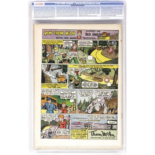 50. Since we cannot examine encapsulated notes or comics, they are sold "as is" without our grading opinion, and may not be returned for any reason. Auctioneer shall not be liable for any patent or latent defect or controversy pertaining to or arising from any encapsulated collectible. In any such instance, purchaser's remedy, if any, shall be solely against the service certifying the collectible.