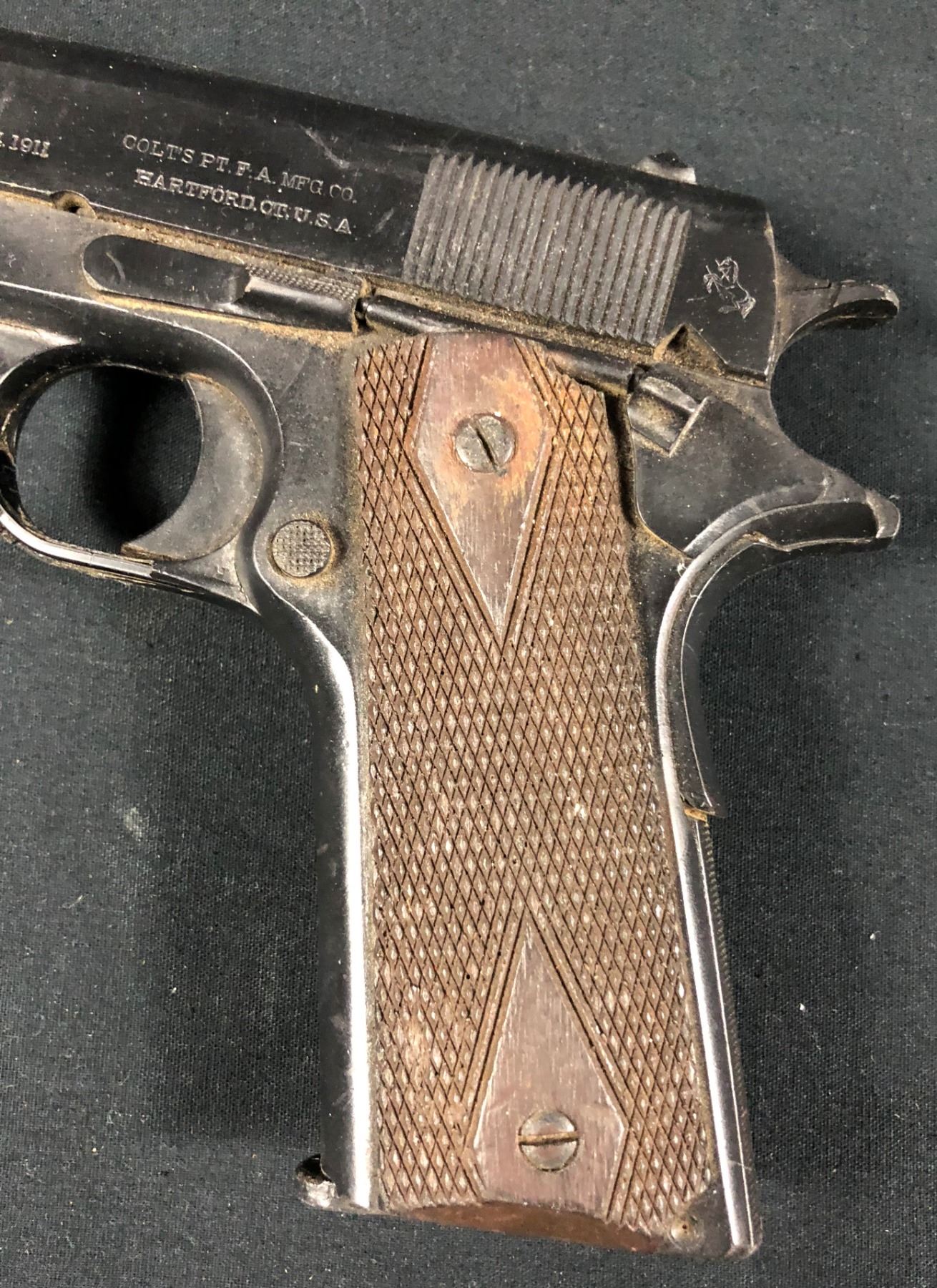 Original screen used 1911 handgun used by "Steve Trevor", played by Chris Pine in the superhero film Wonder Woman (2017) based on the DC Comics character of the same, where, when a pilot crashes and tells of conflict in the outside world, Diana, an Amazonian warrior in training, leaves home to fight a war, discovering her full powers and true destiny. Wonder Woman stars Gal Gadot in the title role, alongside Chris Pine, Robin Wright, Danny Huston, David Thewlis, Connie Nielsen, and Elena Anaya.