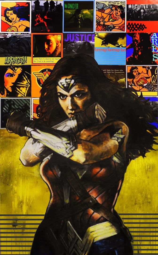 Stephen Holland's Wonder Woman is full of action. A 42" x 25.75" giclee PP1 on stretched canvas with COA.