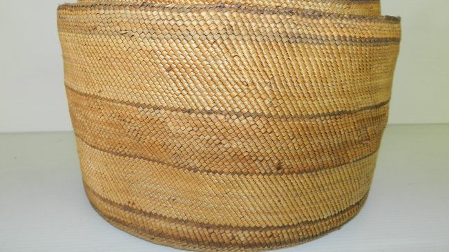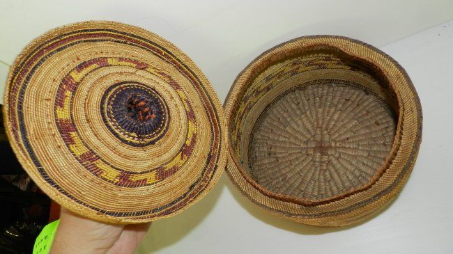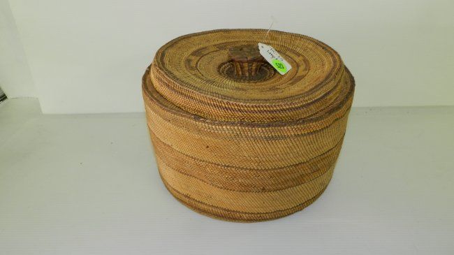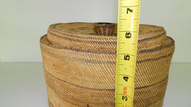 Wonderful Antique / Vintage Native American Makah lidded basket 6 1/2x9"