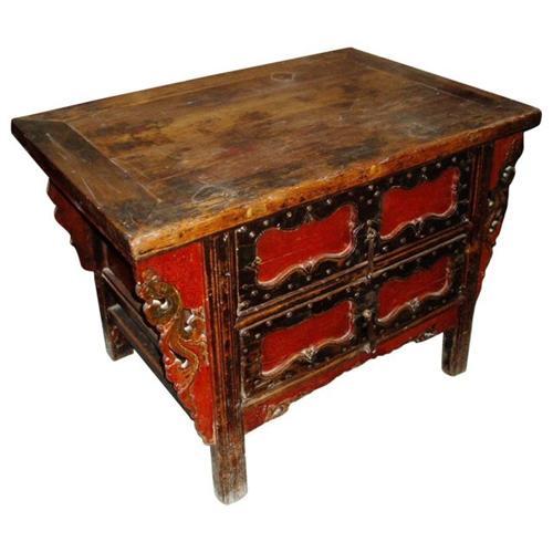 The antique furniture is a piece of exquisite chinese Qing dynasty's altar table made of wood gathered from Hebei province in China.A wonderful piece for a room that can hold it.At the beginning of the Qing Dynasty, furniture followed Ming patterns and styles.Qing Furniture showed its own uniqueness with the absorption of western art. It was larger in size with grandeur and pageantry.Engraving was a popular and important means of furniture decoration. The subjects range from auspicious character patterns, to geometric patterns and scenes in nature with animals, mountains and waters, flowers and grass. Color painting, especially gold painting, was widely used.Commercial symbols emerged, such as patterns concerning money and fortune.To later Qing furniture has less engraving ,instead ,inlays of stone, porcelain and bone, which catch the eye more easily than exquisite engraving, are used to tell of the luxurious lifestyle of the owner. In addition, color and gold painting become the vogue depicting the preference for gaudiness by the wealthy.