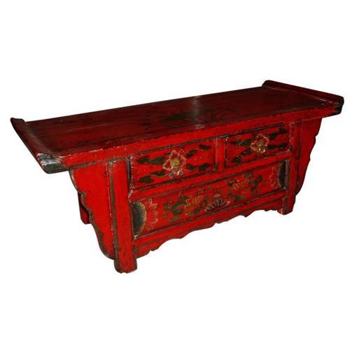 The antique furniture is a piece of exquisite chinese Qing dynasty's altar table made of wood gathered from Hebei province in China.A wonderful piece for a room that can hold it.At the beginning of the Qing Dynasty, furniture followed Ming patterns and styles.Qing Furniture showed its own uniqueness with the absorption of western art. It was larger in size with grandeur and pageantry.Engraving was a popular and important means of furniture decoration. The subjects range from auspicious character patterns, to geometric patterns and scenes in nature with animals, mountains and waters, flowers and grass. Color painting, especially gold painting, was widely used.Commercial symbols emerged, such as patterns concerning money and fortune.To later Qing furniture has less engraving ,instead ,inlays of stone, porcelain and bone, which catch the eye more easily than exquisite engraving, are used to tell of the luxurious lifestyle of the owner. In addition, color and gold painting become the vogue depicting the preference for gaudiness by the wealthy.