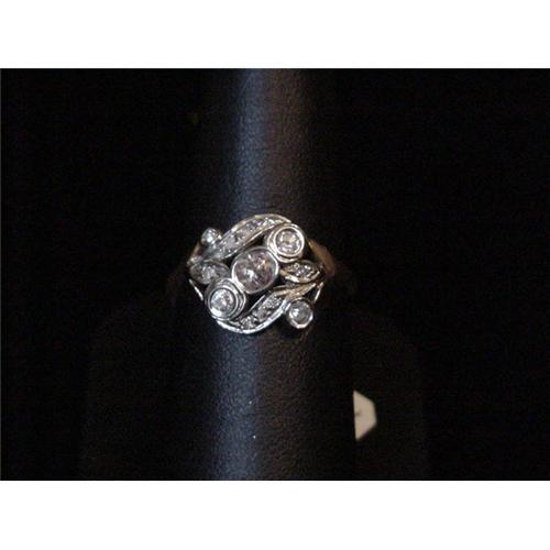 Wonderful old, Circa 1900, platinum topped 14kt yellow gold "swirl" design ring set with Old European Cut diamonds lady's ring set with approximately .40-.45 cts total weight of diamonds. Currently a size 7 1/4 (little larger but smaller than 7 1/2) but can size once at no charge to customer. Lovely old piece. Very good condition.