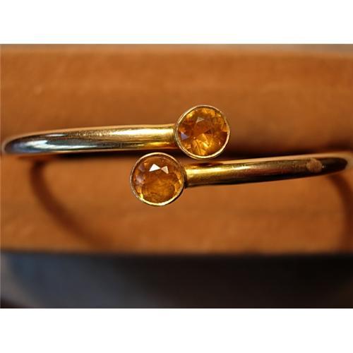 Wonderful Circa 1900 yellow gold and citrine bracelet set with two bezel set round brilliant cut citrines which "crossover" 14kt yellow gold tube style bracelet. Beautiful tailored look. Fits average size wrist.