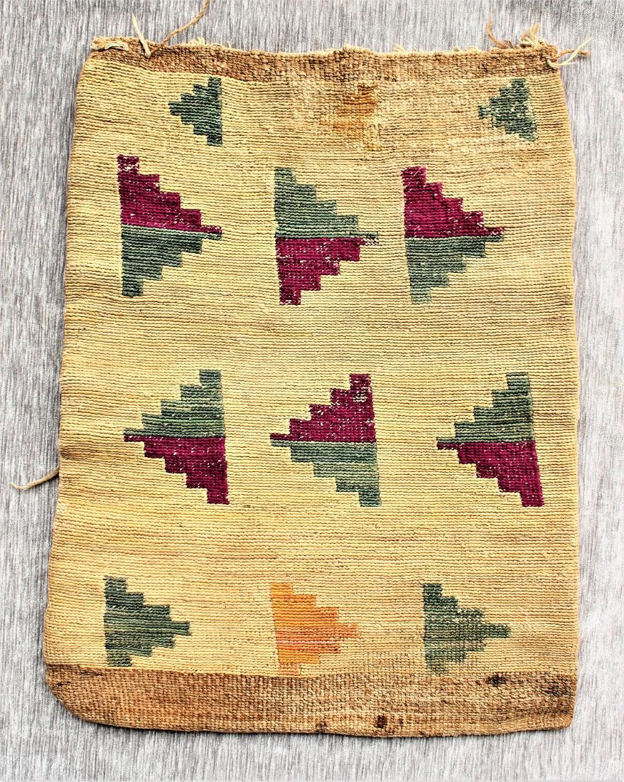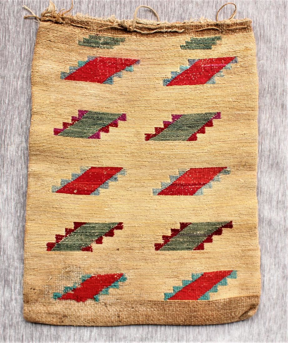 Very nice seldom seen oversized bag with geometric design, showing nice color and age. Dimensions 13"x 18".