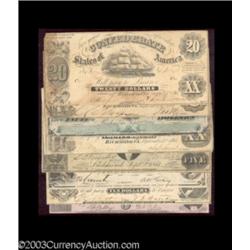 <TABLE cellSpacing=0 cellPadding=0 width="100%" bgColor=#000000 border=0><TBODY> <TR><TD width="100%"><TABLE cellSpacing=1 cellPadding=3 width="100%" border=0><TBODY><TR><TD width="100%" bgColor=#79735c><FONT face=arial color=#ffffff size=3><B>Description</B> </FONT></TD></TR><TR><TD width="100%" bgColor=#ffffff><FONT face=arial size=2><B>Wonderful Mixture of Early Confederate Types.</B></I><BR>T9 $20 1861 Very Fine, minor edge damage at left<BR>T13 $100 1861 Very Fine<BR>T16 $50 1861 Very Fine, minor edge damage<BR>T18 $20 1861 Fine<BR>T34 $5 1861 Fine, CC<BR>T36 $5 1861 Very Fine-Extremely Fine<BR>T46 $10 1862 Very Fine-Extremely Fine<BR>T53 $5 1862 Choice About Uncirculated<BR>(700-900 ) (8 notes) </FONT></TD></TR></TBODY></TABLE></TD></TR></TBODY></TABLE><BR><TABLE cellSpacing=0 cellPadding=0 width="100%" bgColor=#000000 border=0><TBODY><TR> 8 notes Important notice: Heritage usually auctions material at the rate of 200-250 lots per hour. On some occasions eBay Live bid software or the Internet may not be able to keep up with the pace of the auction. We recommend placing a realistic absentee bid now as insurance to avoid disappointment. Occasionally the auctioneer may eliminate or reject an eBay Live bid, and the auctioneer may also reopen a lot after the close of the eBay live bidding (usually because we missed an audience bid), and may reject your bid even if it shows you as the winning bidder. By bidding via eBay Live, you agree that Heritage may award the lot to another bidder at its sole discretion under the circumstances described above or any other reasonable circumstances. Also please note that all Heritage lots purchased through eBay Live carry a 20% Buyer's Premium. Please make sure you read the Terms and Conditions before you bid.</TR></TBODY></TABLE>