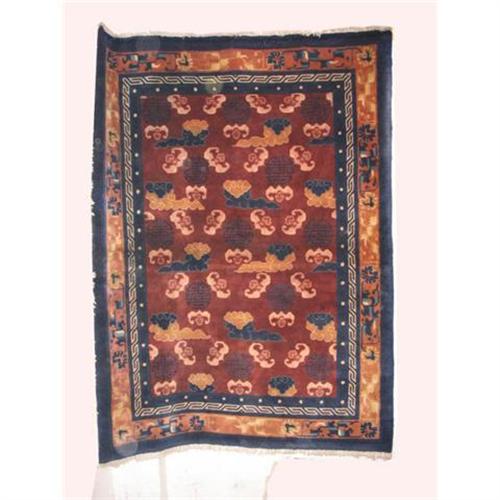 The collection you are looking at is a exquisite pure wool rug with beautiful cloud pattern handmade in Tibet.Rugs and carpets are basic necessities in the Tibetan daily life.The high quality hand spun,vegetable dyed look,and the primitive but highly stylized patterns greatly appealed to westerners.Typically made for use as mats to sit on or for meditation,door and window covers,horse saddles,bed covers and pillar wrapping,the traditional Tibetan weaving generally reflect traditional Tibetan culture and religion.However,Chinese designs were also dominant as seen in the display of dragons,phoenix,clouds, floral and lotus images.