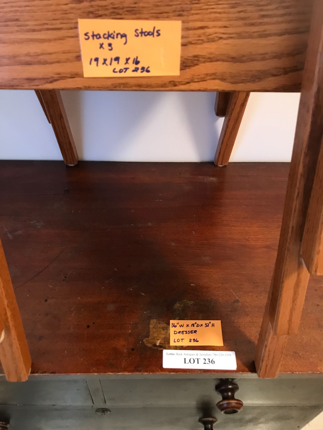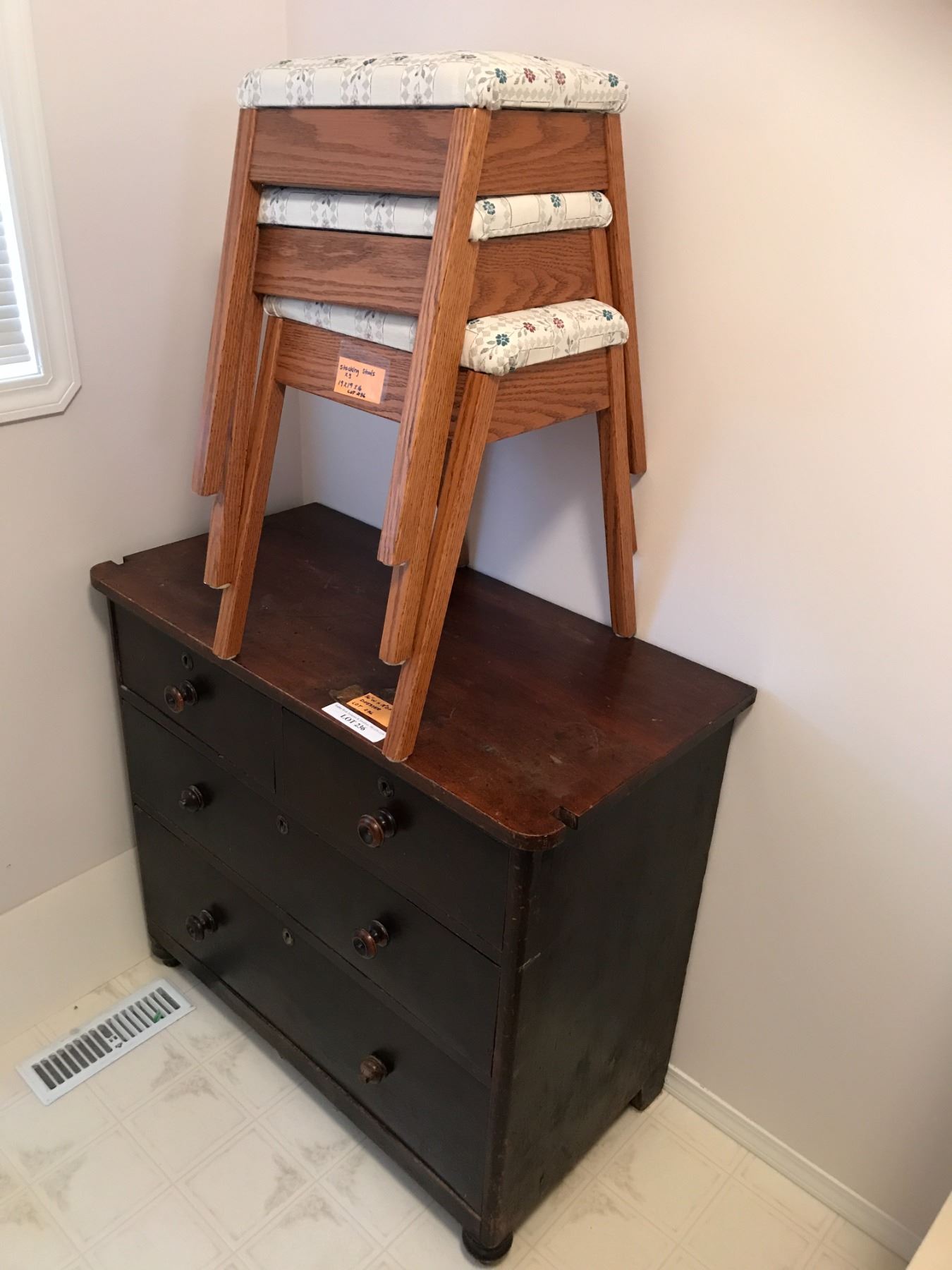 Wood 3 Drawer Chest & 3 Upholstered Stacking Stools